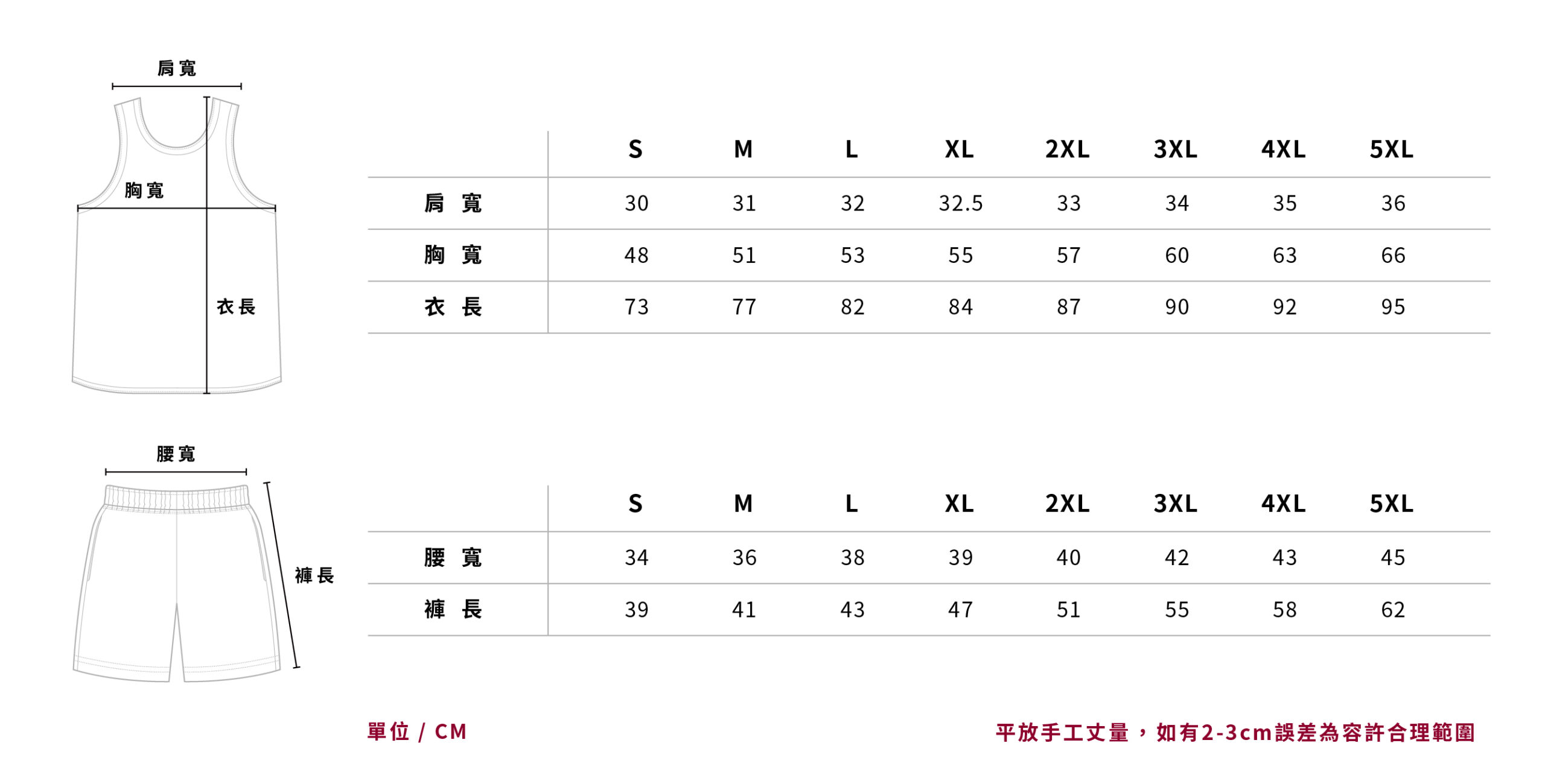 • 平放時測量的尺寸單位 / cm(±2cm-3cm 為正常誤差值。) 建議運動用服要挑選寬鬆舒適尺寸喔!
