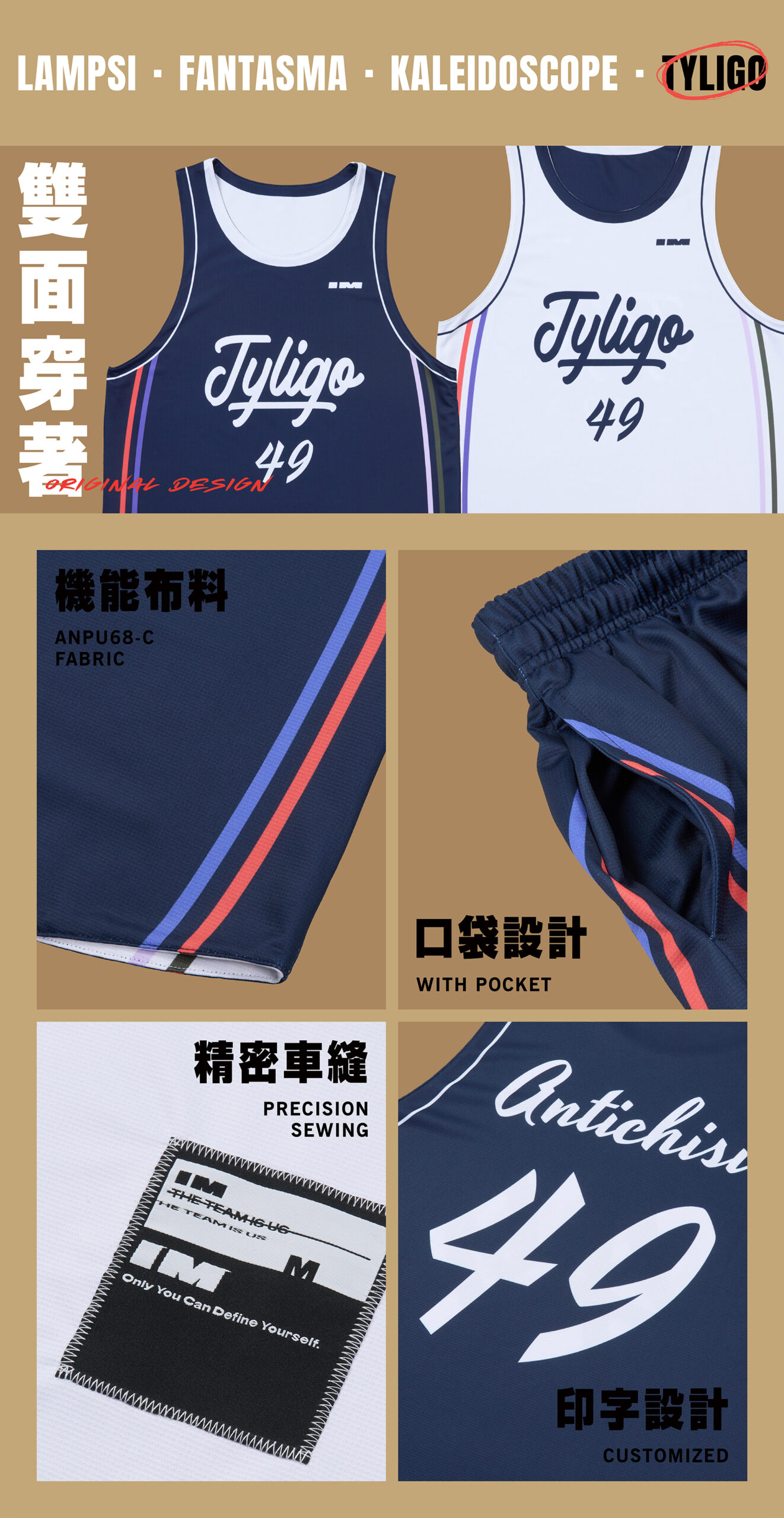 籃球衣 – 縈 繞 NT$1250NT$1500 團體客製 此為客製化商品,付款後 15-25 天內出貨。 急單需求或特殊情況請私訊客服。 三件以下小量訂購請私訊客服。 客製化商品不適用七天鑑賞期退換貨。 請下單前務必再三確認訂購內容。 此款為雙面球衣/單面球褲 商品價格 包含以下客製項目: 隊名 – 胸前 胸號 – 胸前置中 背隊名/姓名 – 背後上方 背號 – 後背置中 褲號 – 正面褲腳 *客製項目皆可選擇性調整*本作品為原創設計,未經授權禁止任何形式之使用與轉載。 最新優惠詳情請參閱 尺寸表 LINE 雙面籃球服 籃球服 籃球團體服訂購請按 立即客製,進入客製化系統進行訂購。 最新優惠詳情請參閱 優惠活動-籃球衣 ,進入 客製化系統 可選擇優惠方案。 如果有不懂的地方,請參考 客製流程 或是 常見問題 或是加入我們官方Line:@IMBC 詢問客服小姐姐喔! 平放時測量的尺寸單位 / cm(±2cm-3cm 為正常誤差值。) 建議運動用服要挑選寬鬆舒適尺寸喔! 團體訂製建議到訂單系統申請套量服,比較不會出問題喔! 螢幕顏色與實際商品顏色會有一定落差,不接受顏色落差退換貨,下單前請三思。 客製化商品除了尺寸、款式、加工上的重大錯誤外,依法律規定不得退換貨。 p.s. 套量服運費,寄出由 IMBC 負擔,寄回由客人負擔 籃球衣 – 縈 繞